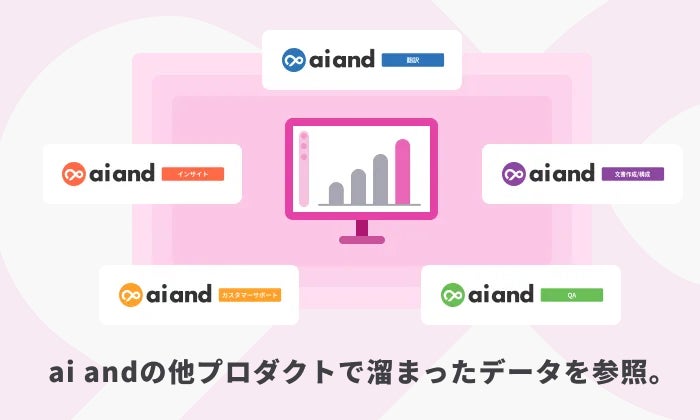「ai andインサイト」は、アンケート集計を自動化し、ユーザーインサイト分析を支援するプロダクトです。多様なユーザーボイスの定性情報を定量情報に変換し、クロス分析を自動的に実施してアクションプランを作成する仕組みとなります。