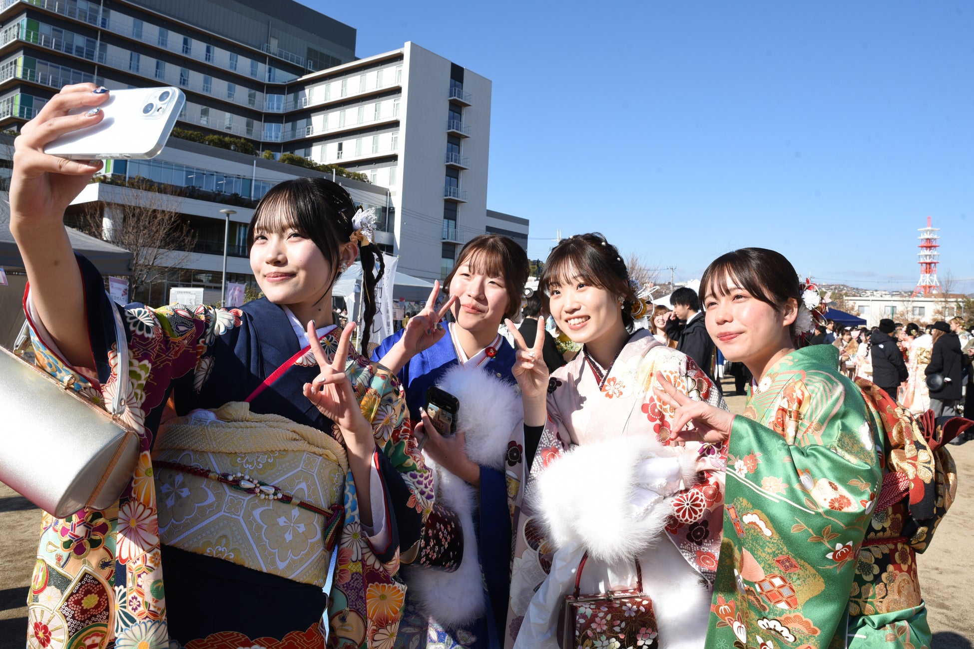 対象者は平成17年4月2日から平成18年4月1日生まれの1,389人で、当日の式典には800人が入場し、イベント会場では久しぶりに再会した友人同士が笑顔で言葉を交わす姿が多く見られました。