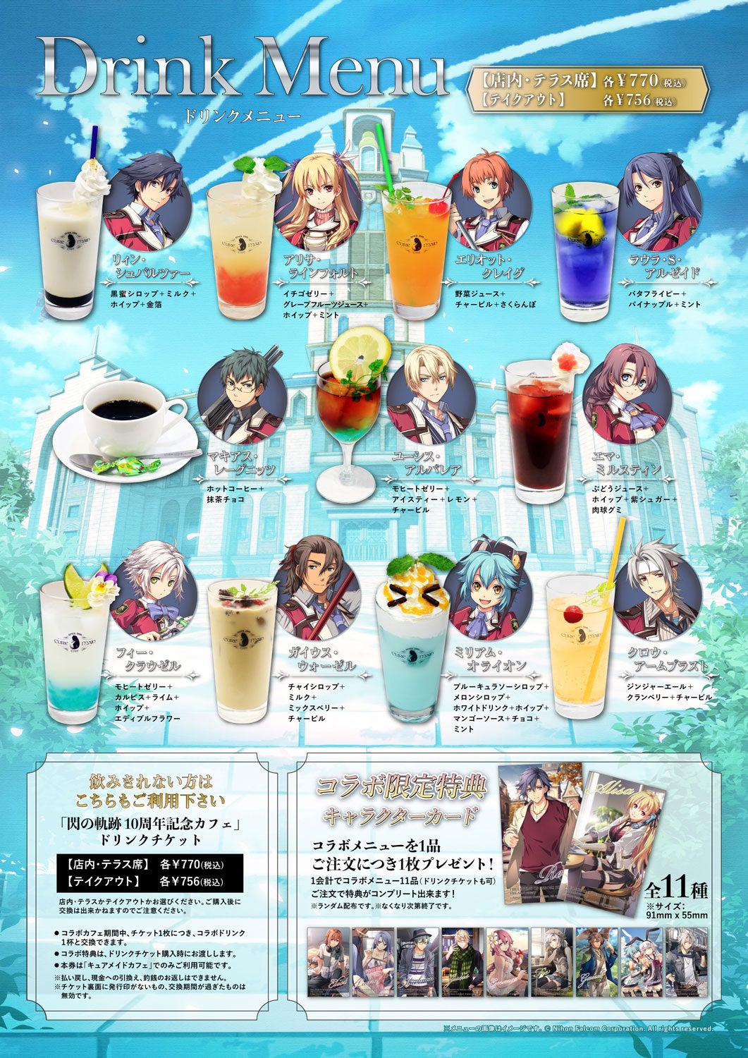 コラボメニューや展示、特典と盛りだくさんな<『英雄伝説 閃の軌跡』10周年記念カフェ>で、アニバーサリーをお楽しみください。