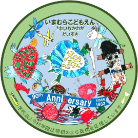 令和5年(2023年)に今村学園が、創立90周年を迎えたこと記念して作成。市の出前講座で下水道の大切さを学んだ園児達がきれいな川を守りたいという想いを込めてデザインしました。