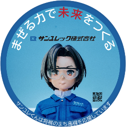 サンユレック株式会社は、合成樹脂の研究開発、製造、販売を手掛けるものづくり企業です。「地球愛は、地元愛から。」という想いを込めて、SDGsプロジェクトから生まれた2030年に入社する未来の社員「サンユレくん」をデザインに採用しました。
