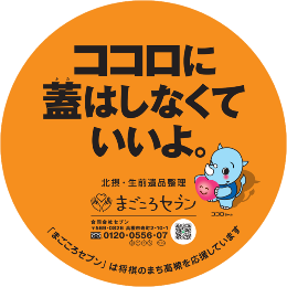 当社「まごころセブン」は高槻市内の生前・遺品整理の会社です。遺品整理を通じてご遺族の心の整理もお手伝いする当社の姿勢を、力強くて優しいイメージである当社のマスコットキャラクター「ココロちゃん」がマンホールの蓋と心の蓋に因んで「ココロに蓋はしなくていいよ」と語りかけるデザインに致しました。