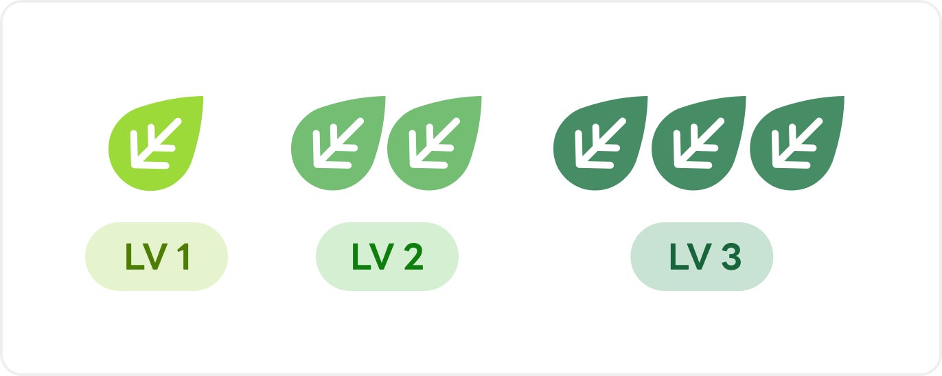 ESGスコアに応じて、点数にあわせて昇順で葉の数が増えるよう3段階で表示(※6)します。