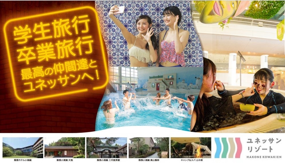 ◆内容 :隣接する箱根ホテル小涌園では、学生限定プラン【学生旅行・卒業旅行はユネッサンで決まり♪】を ご用意いたしました!