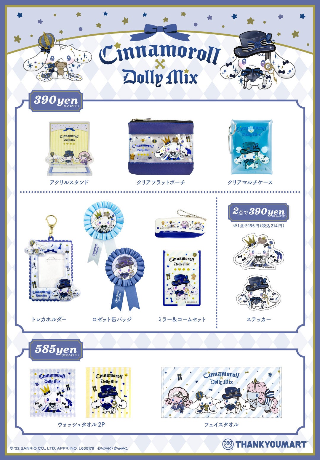 390円(税込429円)を中心としたかわいいアイテムが集まるショップ「サンキューマート」を運営するエルソニック株式会社は、株式会社サンリオの人気キャラクター『シナモロール』、イラストレーターの「なつめみく」さんが手掛ける『Dolly Mix』とトリプルコラボした限定アイテムを全国のサンキューマート店舗と公式オンラインショップで12月中旬より入荷順次販売開始いたします。