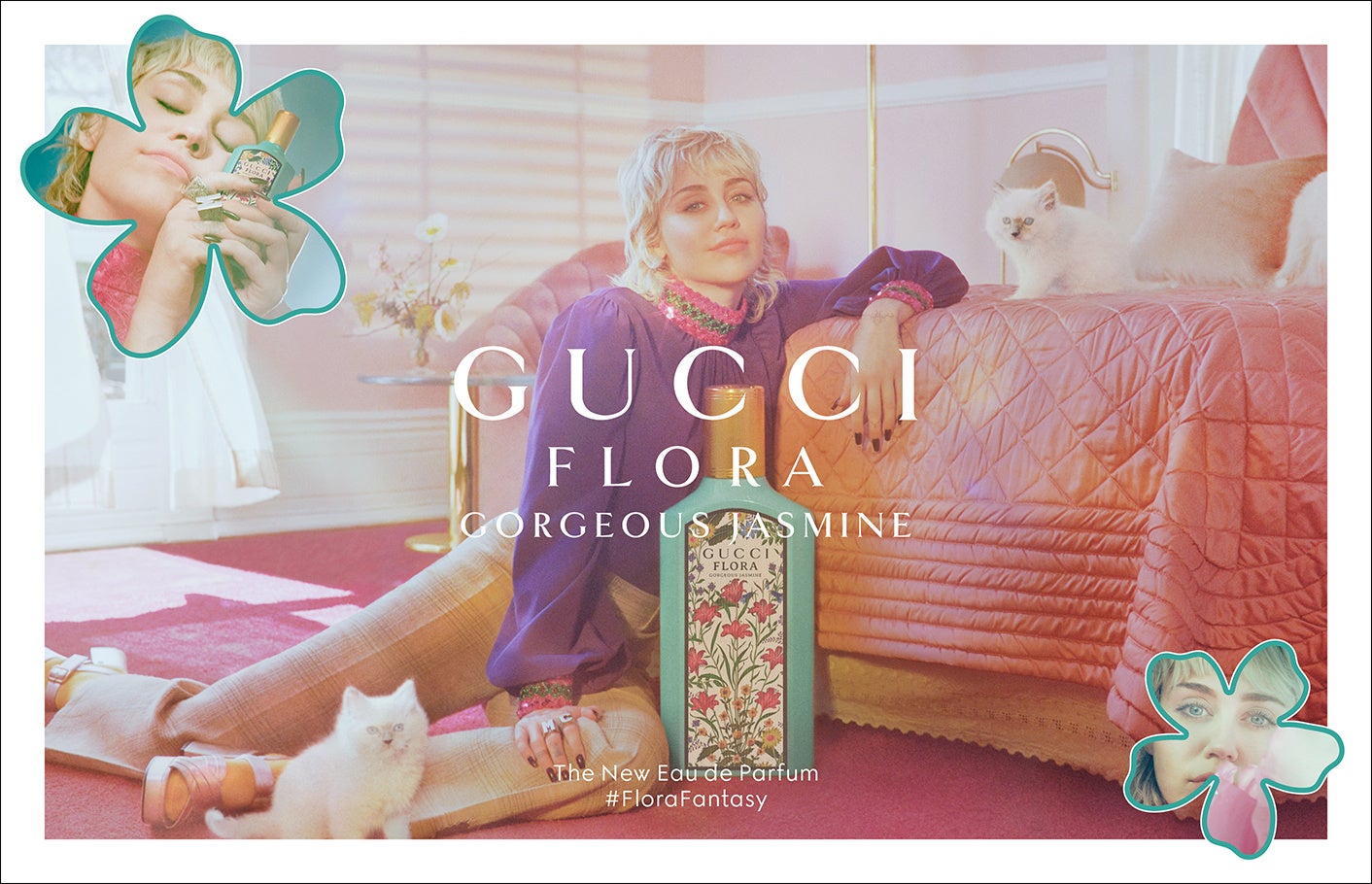 前作に続き、アーティストのペトラ・コリンズが手掛けた「グッチ フローラ ゴージャス ジャスミン」の広告キャンペーンは、すべての夢が始まる真のイマジネーションが広がる場所、ベッドルームで繰り広げられます。ベッドに寄りかかり子猫に寄り添いながらくつろぐマイリー・サイラスは、「グッチ フローラ ゴージャス ジャスミン」のビッグボトルを抱え、空想にふけっています。窓から降り注ぐ陽ざしがブルーとピンクの部屋を明るく照らし、パステルカラーの情景が超現実的なムードを生み出し、見る者をアニメで描く夢の世界へと引き込んでいくのです。