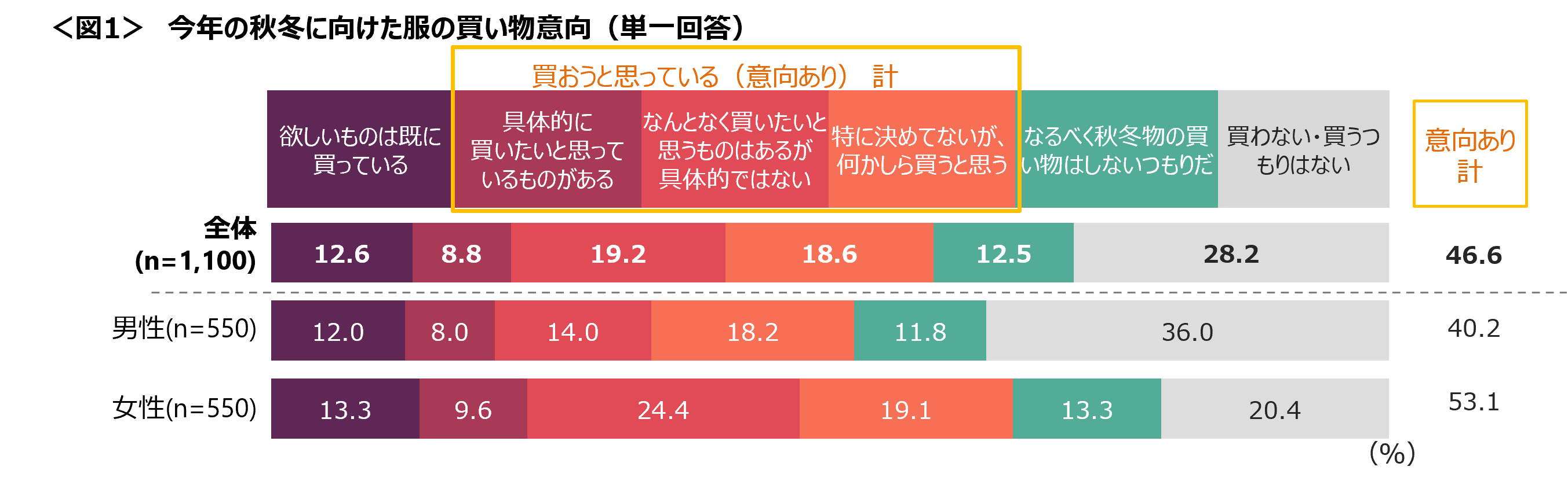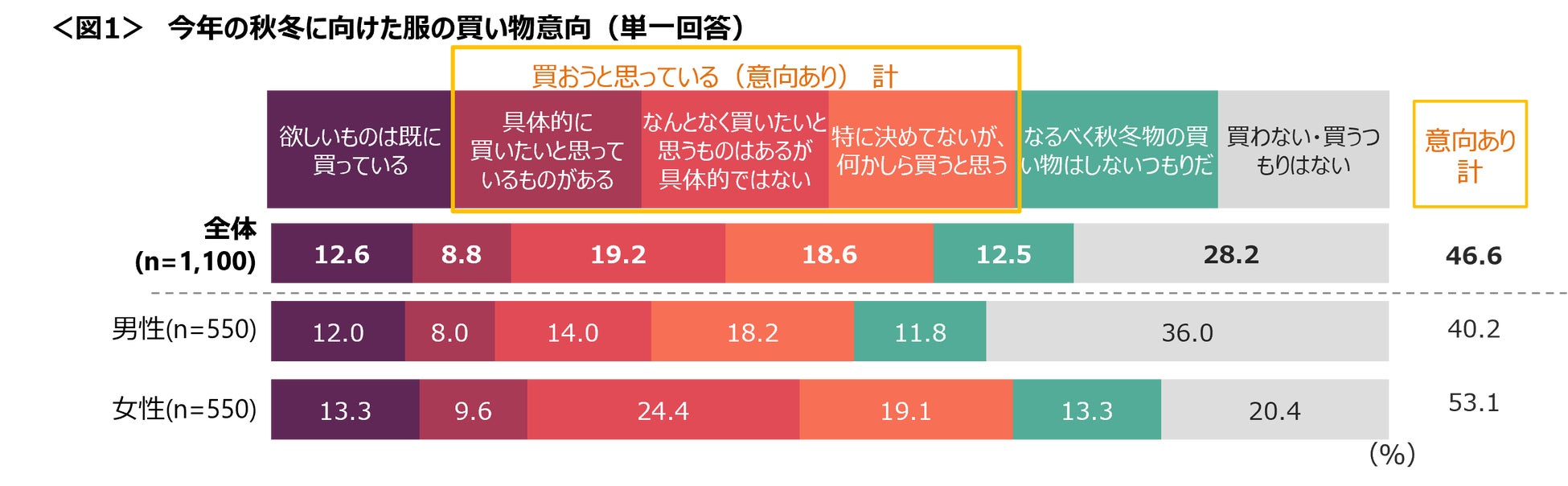 秋冬に向けた服の買い物について、「買おうと思っている」人は46.6%。<図1>