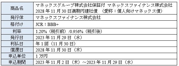 本債券はマネックスグループ株式会社の100%子会社であるマネックスファイナンス株式会社が発行するマネックスグループ株式会社保証付の円建て社債です。