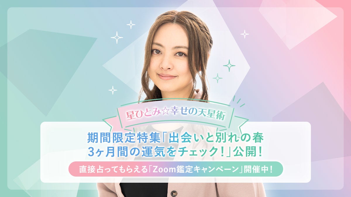 「突然ですが占ってもいいですか?」でのリモート鑑定さながらに星ひとみさんに占ってもらえるキャンペーン開催中!さらに!期間限定特集「出会いと別れの春 3ヶ月間の運気をチェック!」も公開!