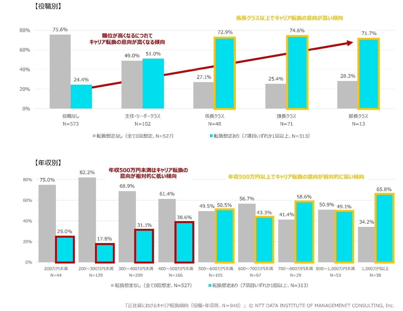 キャリア転換の意向、係長以上で7割超・年収500万円以上で5割─職責・収入が意向に影響