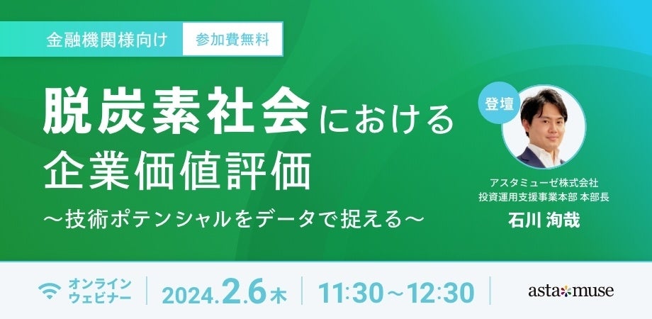 金融機関向け無料セミナー「脱炭素社会における企業価値評価~技術ポテンシャルをデータで捉える~」を2月に再開催