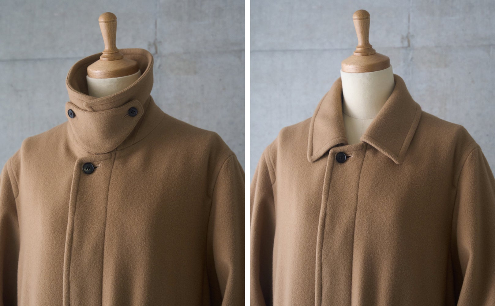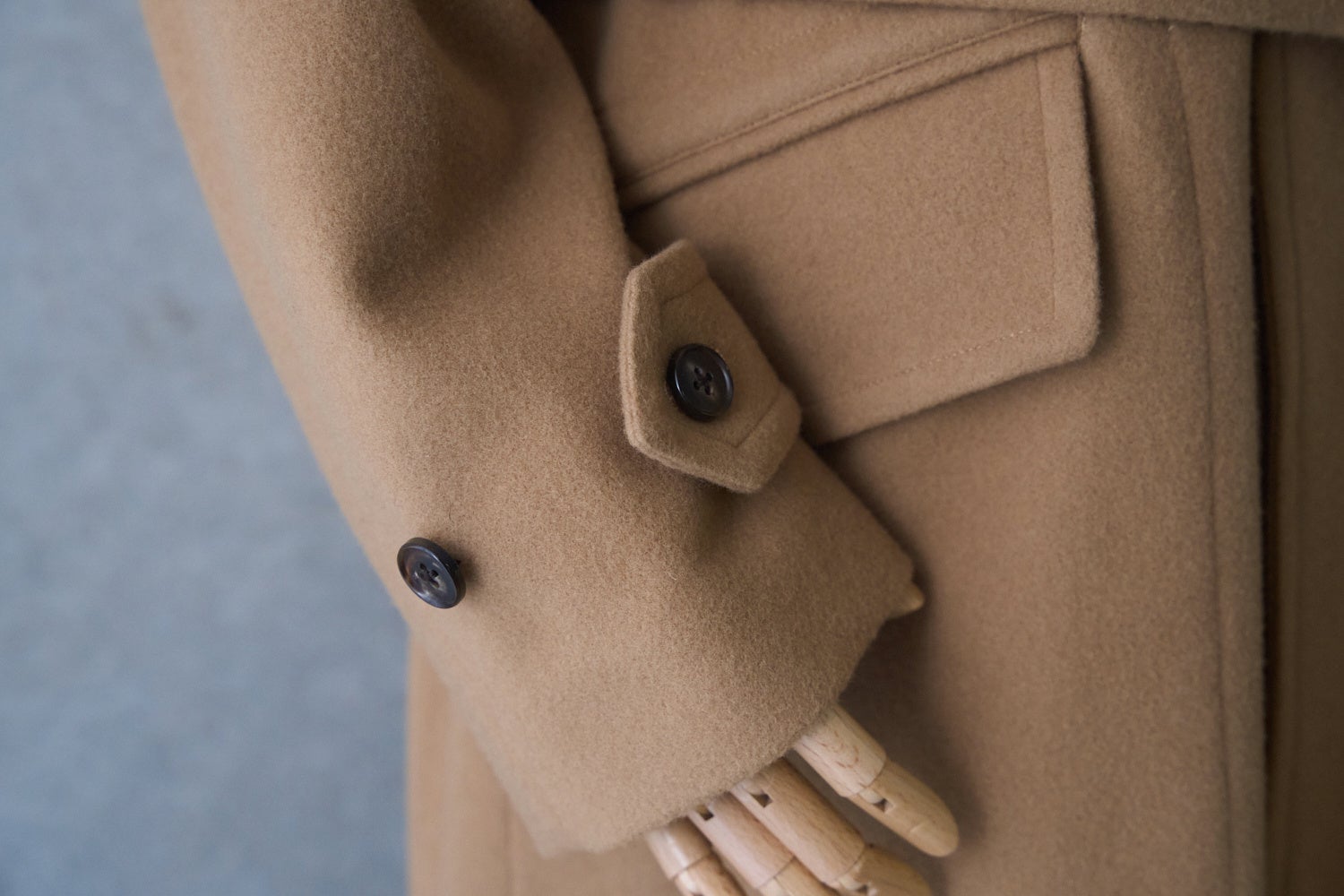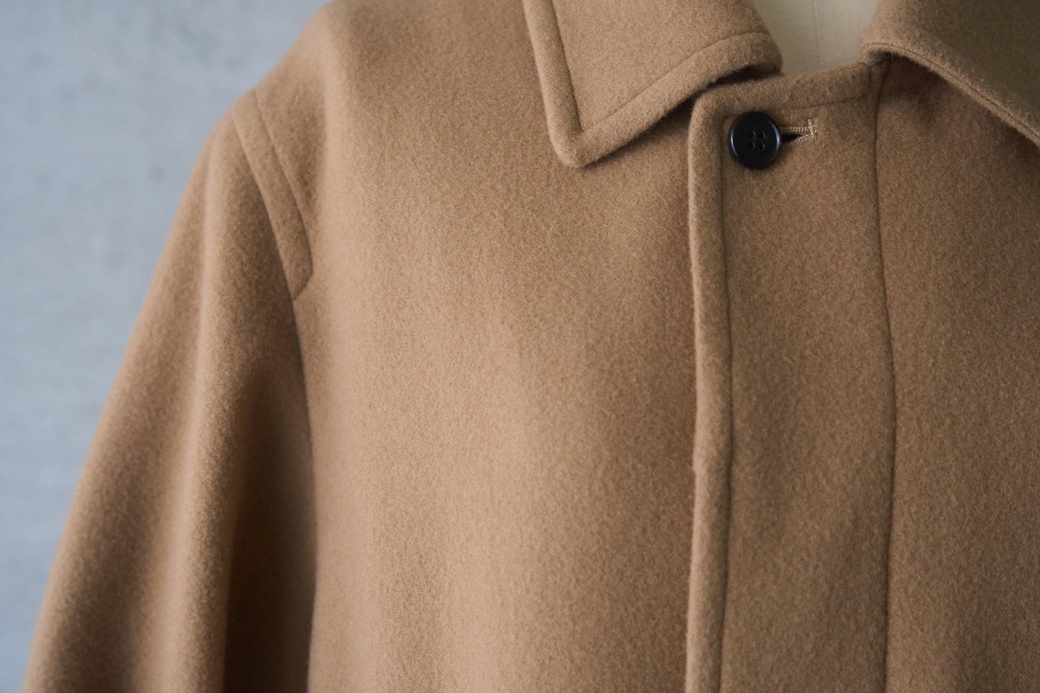 適度な膨らみと、やわらかく滑らかな肌触りが特徴のニューイングランドラム素材を採用したこちらのコート。その贅沢な「あたたかさ」はもちろんですが、なんといってもふわりとした「軽さ」が大きな魅力です。古着のような重量感がある冬コートもかっこいいですが、やはり現代のベーシックにするなら、毎日着たいと思える「着心地」は外せない要素です。