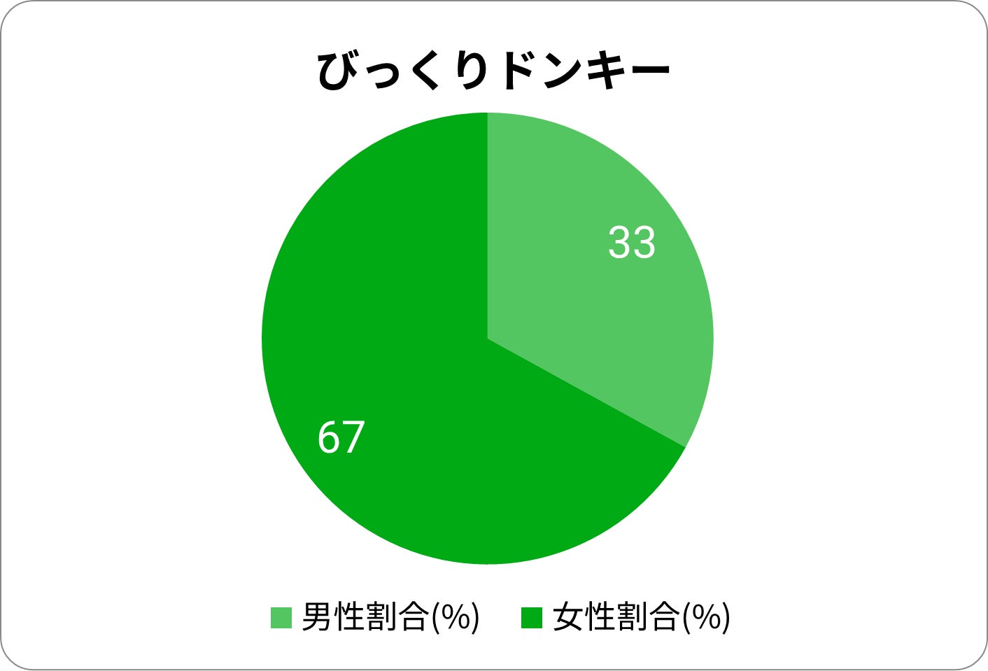 さらに、20~30代の男女別比率を見ると、「びっくりドンキー」の検索割合とほぼ同じであることがわかります。