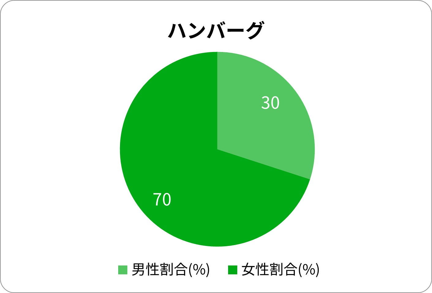 まず、20~30代層で直近1年間に「ハンバーガー」と「ハンバーグ」を検索した人の男女比を見てみると、「ハンバーガー」が男女比がほぼ均衡なのに対し、「ハンバーグ」を検索する人の約7割が女性でした。「ハンバーグ店」として一般に広く定着している「びっくりドンキー」の男女比もまた、「ハンバーグ」と似た傾向にあり、女性の検索が多いという共通点が見られました。