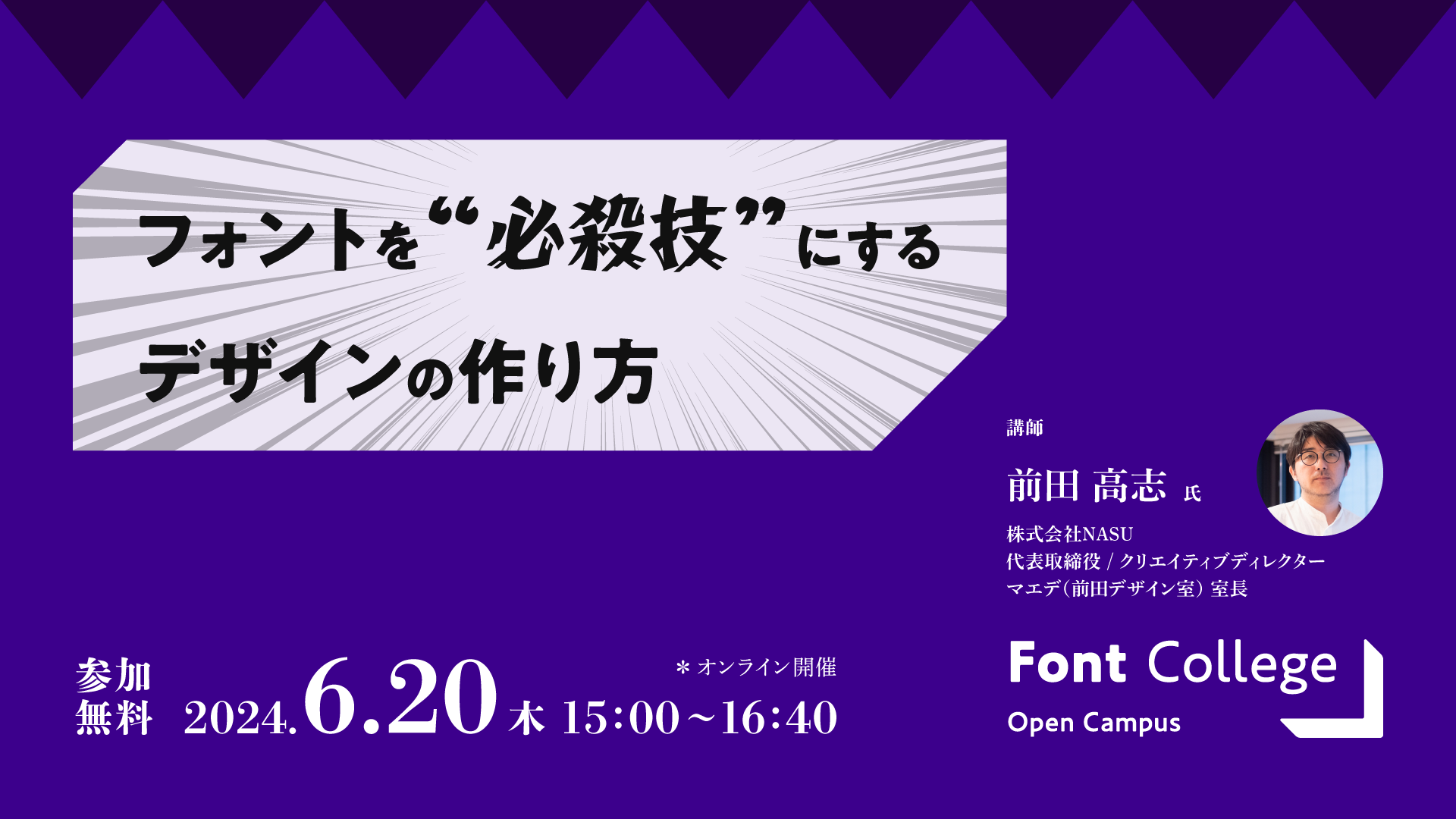 タイトル:Font College Open Campus 14 「フォントを“必殺技”にするデザインの作り方」