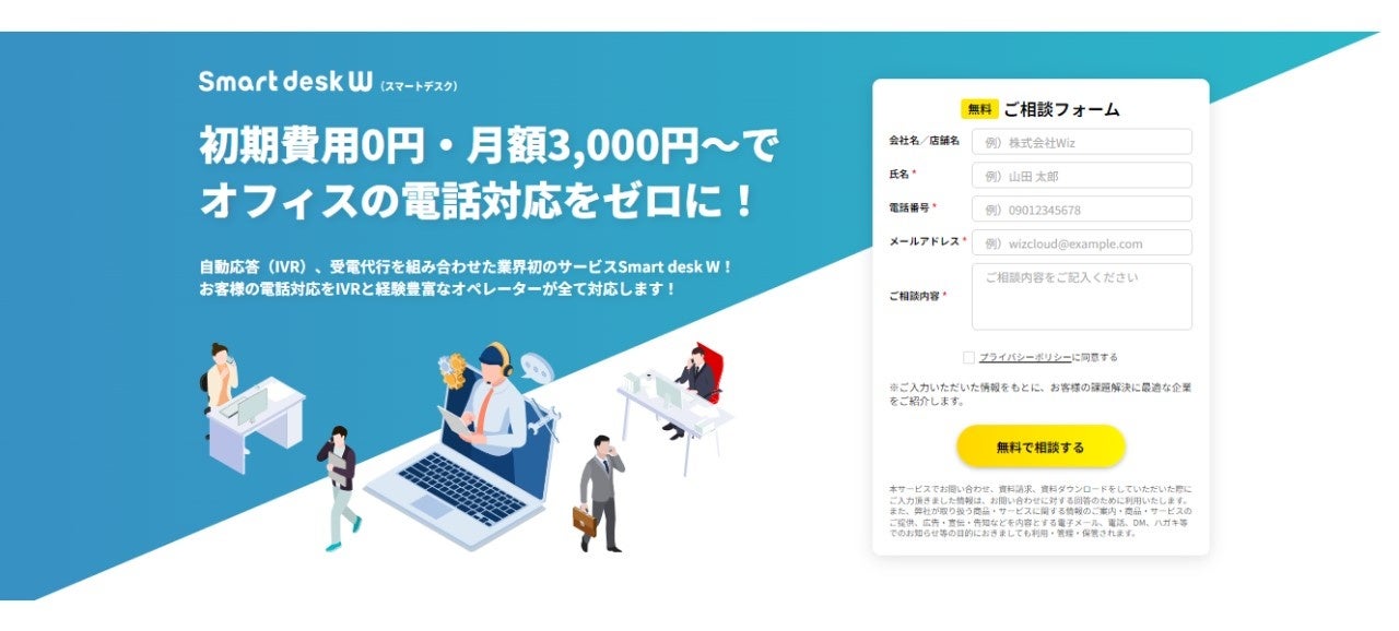 またサービスリリースを記念しまして、ITの総合商社であるWizが取り扱う他サービスの商談を月1回受ければ、同月の基本料金が無料となる破格のオプションも当面の間ご用意しております。