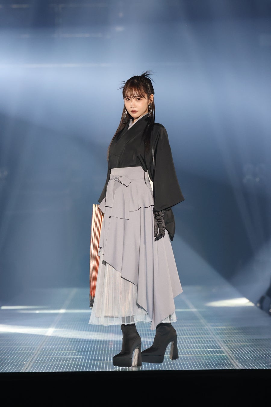 和ポップをテーマにした『IDOL RUNWAY COLLECTION SPECIAL COLLECTION 2』ステージでは、桜庭遥花(CUTIE STREET)、橋本桃呼(高嶺のなでしこ)、佐野愛花(CUTIE STREET)、増田彩乃(CUTIE STREET)、涼海すう(高嶺のなでしこ)、小此木流花(Jams Collection)、日比野芽奈(ラフ×ラフ)、大森莉緒(Ma’Scar’Piece)、蟹沢萌子(≠ME)がポップな色柄の着物とスニーカーを掛け合わせたスタイリングで、新しいジャパンカルチャーを発信しました。