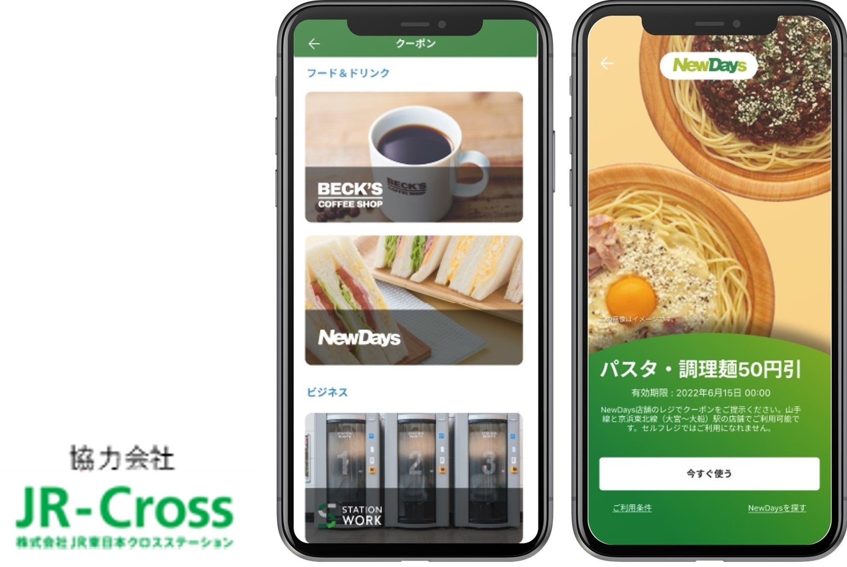 山手線の全線および京浜東北・根岸線の全線のエキナカ店舗など「NewDays」「NewDays KIOSK」「ベックスコーヒーショップ」「STATION WORK」でご利用いただけるクーポンを配信いたします。