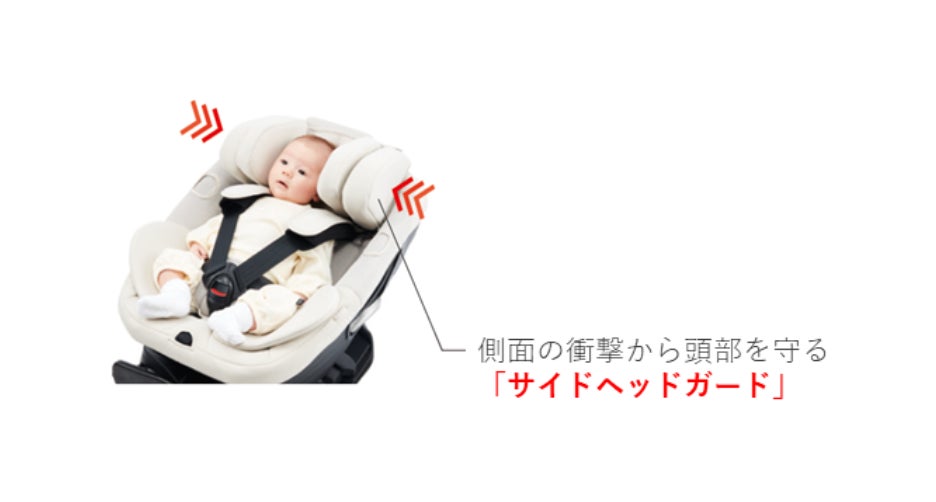 万が一の事故に備えた新機構「アクティブヘッドクッション※3」は衝突時、瞬時に作動するヘッドクッション。折りたたまれることで厚みが増し、お子さまの頭部を衝撃から守ります。