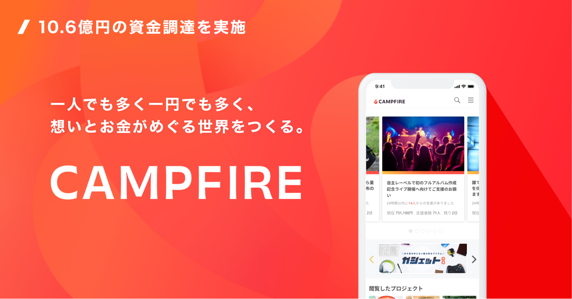 CAMPFIRE、10.6億円の資金調達を実施。累計調達金額は87.2億円に