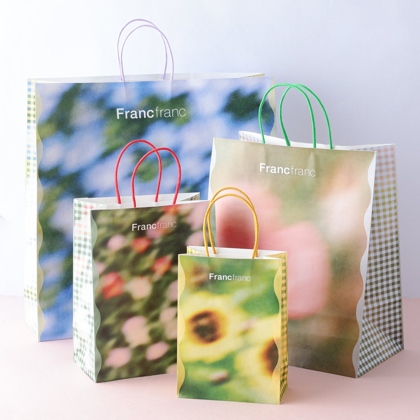 新デザインのショッピングバッグを、全国のFrancfranc店舗※4、Francfrancオンラインショップにて、2026年1月23日(金)より展開します。定番ショッピングバッグ※5のデザイン刷新は約3年ぶり。お買い物の時間をより楽しんでいただけるよう、春の訪れにぴったりな花柄モチーフを採用し、シーズンムードに沿った心高鳴るデザインに仕上げました。さらに、これまでのS・M・Lの3サイズに加え、小さなサイズの商品やプチギフトにも対応できるSSサイズを新たに追加しました。