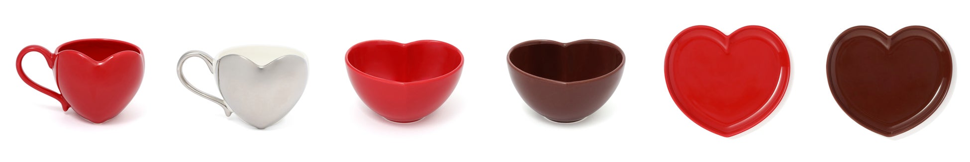 ハート型のボウルとプレートです。ボウルは、トリュフチョコレートやクッキーなどの小さなお菓子を盛りつけたり、チョコレートソースを入れてディップ用に使用したりするのもおすすめです。プレートは、1カットのケーキやチョコレート、焼き菓子などを盛り付けるのにぴったり。仲の良い友人とのバレンタインパーティーなどの特別な日から、日常の食卓まで華やかに彩ります。マグなどと組み合わせてカフェセットにし、ギフトとしても楽しめます。