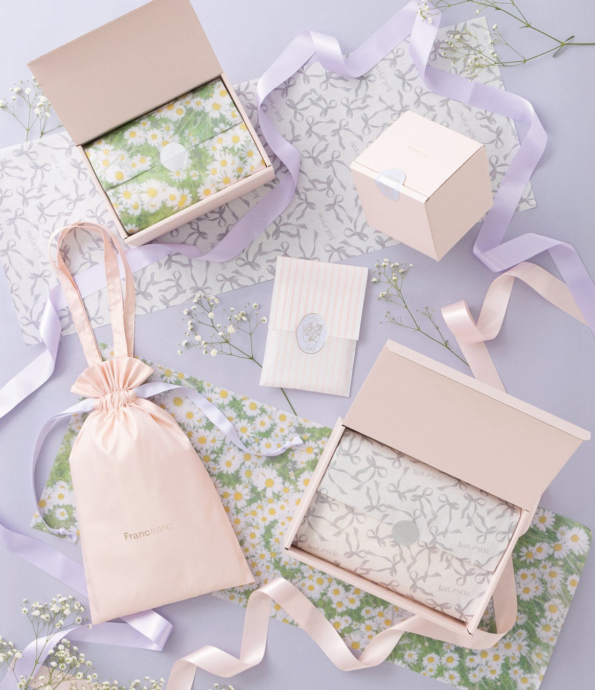 新デザインのギフトラッピング包材を、2026年1月23日(金)より全国のFrancfranc店舗※2およびFrancfrancオンラインショップ※3にて展開いたします。バレンタイン、母の日、クリスマス、誕生日──。一年を通じて訪れる、さまざまなギフトシーンに寄り添い続けてきたFrancfrancから、心高鳴る新デザインのラッピングが登場します。Francfrancのギフトラッピングは、これまでも多くのお客様にご愛用いただいてきました。贈る相手を想いながら、選ぶ時間そのものが特別なひとときとなるように。今回の新デザインでは、ギフトのサイズに合わせた豊富なラインナップ。さらに、もらった後もリユースできる巾着ギフトバッグや、開けた瞬間に心高鳴るデザインが施されているギフトボックスなど、受け取った人が思わず笑顔がこぼれるような、感動の仕掛けを随所に散りばめています。