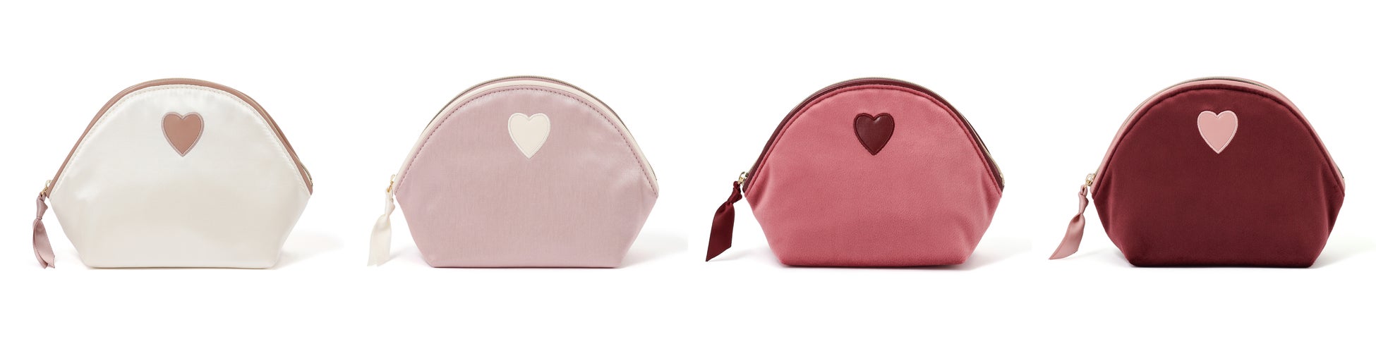 ハート型の小さなワッペンがチャームポイントのポーチです。シンプルで使いやすい、丸みのあるフォルムが特徴。持ち歩きたいコスメをひとまとめに収納できる便利なサイズ感なので、学校やオフィスなど日常使いに便利です。