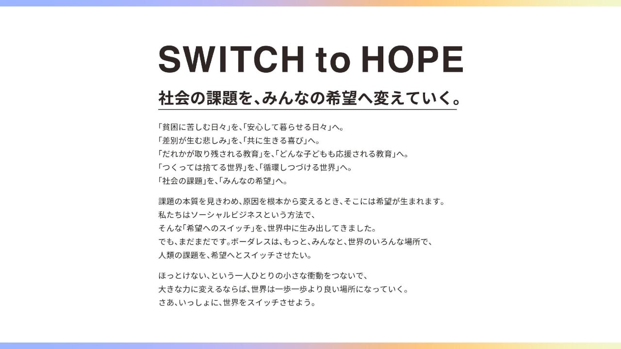「SWITCH to HOPE」ボーダレスの新パーパスが生まれるまで(前編)
