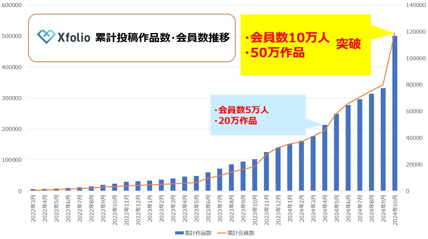 TOPPANホールディングス株式会社のグループ会社である、株式会社BookLive(本社:東京都港区・代表取締役社長:淡野 正)が運営するクリエイター向け総合プラットフォームサービス「Xfolio(クロスフォリオ)」において、累計会員数が10万人を突破したことをお知らせいたします。また、クリエイターの皆様から投稿された作品数も累計50万作品を突破いたしました。
