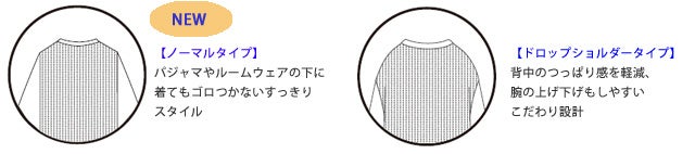 | <設計のこだわり>寝る時のスタイルに合わせて選べる。ノーマルタイプとドロップショルダータイプ |