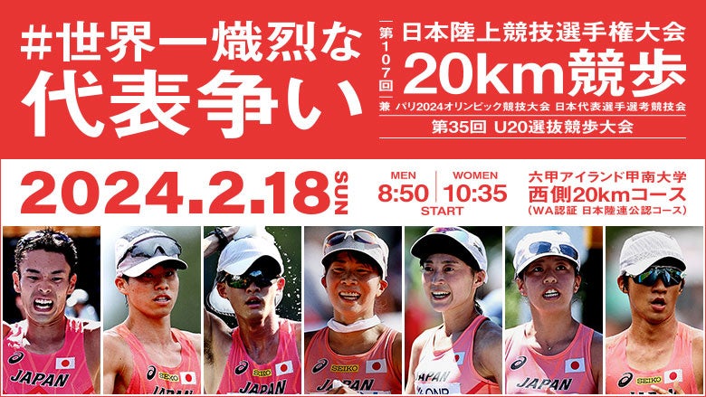 2024年2月18日(日)神戸市六甲アイランドにて「第107回日本陸上競技選手権大会・20km競歩」を開催いたします。
