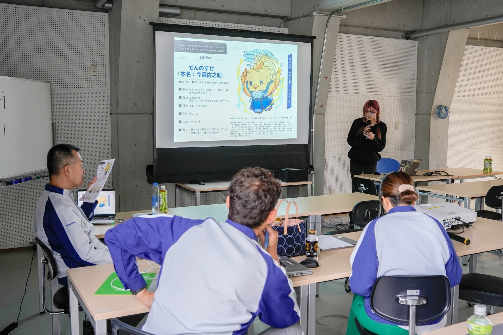 製造を手掛けるパナソニック インダストリーの社員からコンデンサ「SP-Cap」のレクチャーを受け、学生がキャラクターのビジュアルや性格、推しポイントなどを掘り下げ、最終的にゼミ生それぞれが制作した17のキャラクターのプレゼンテーションを行いました。