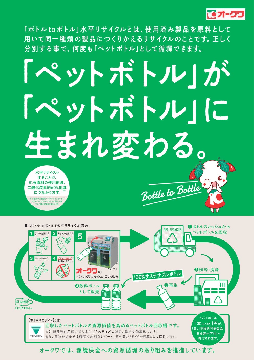 オークワの大阪府下全19店舗でペットボトル「資源」の循環を促進