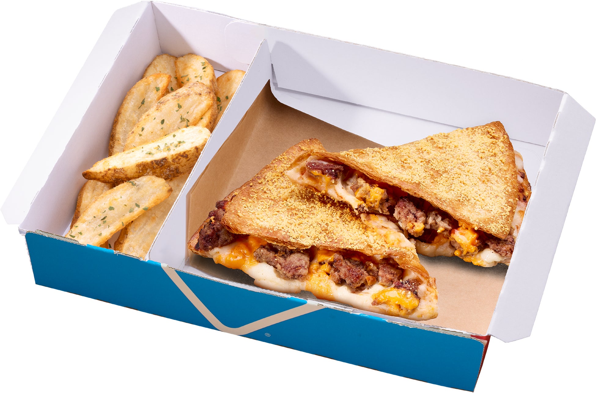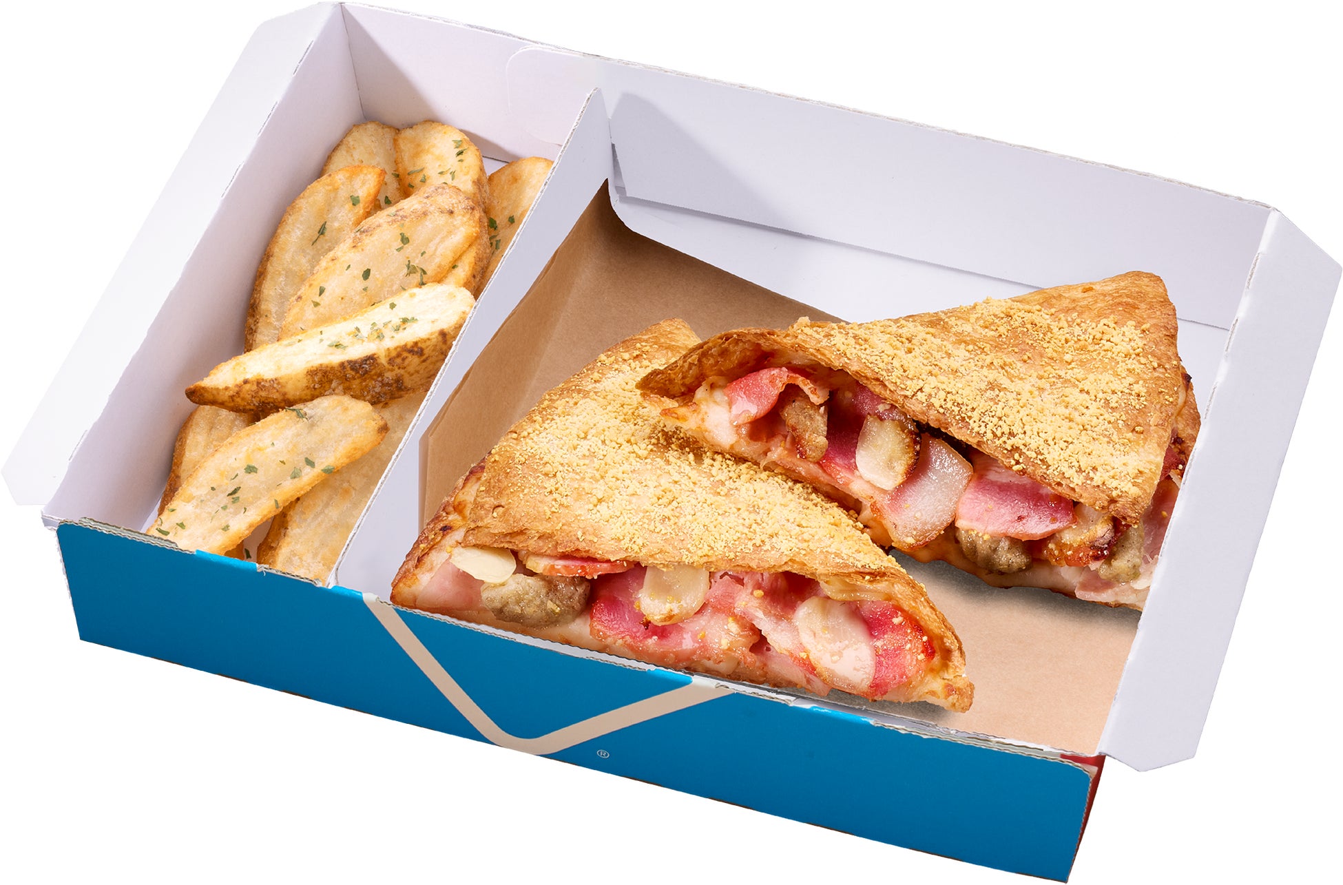 サクサクのクリスピー生地と濃厚でとろけるチーズがたまらない!サイドメニューも付いたワンボックス