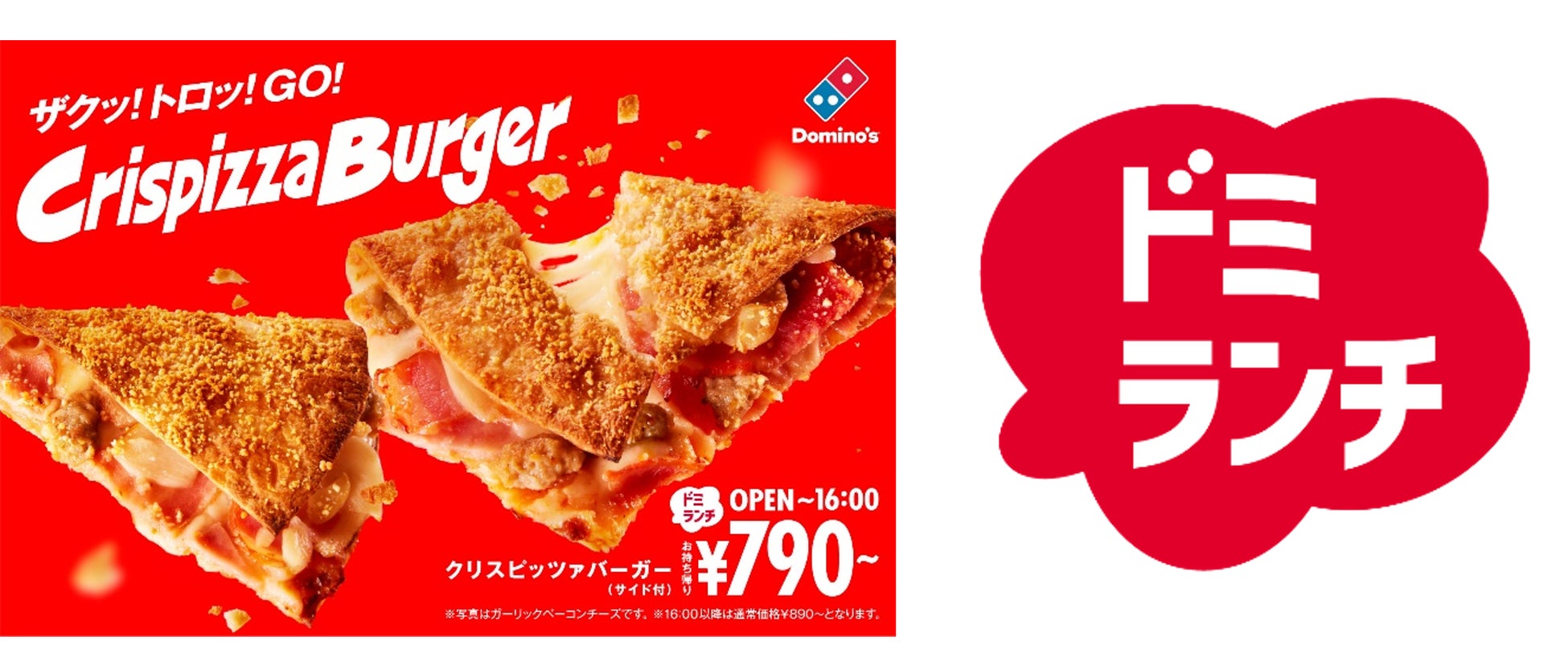 株式会社ドミノ・ピザ ジャパン(代表取締役:ジョシュア・キリムニック、本社:東京都品川区、以下:ドミノ・ピザ)が展開する国内No.1シェアを誇る宅配ピザチェーン ドミノ・ピザは、2025年7月7日(月)より、ランチタイムの新たな定番を提案する新商品「クリスピッツァバーガー」を発売します!サクサクのクリスピー生地に、濃厚なチーズや具材をはさみ、片手で食べられるバーガースタイルでご提供。忙しいランチタイムでも、おいしいアツアツのピザをご注文いただけます。さらに、毎日オープン〜16時限定のランチタイムのおトクなセット「ドミランチ」が同時スタート!新商品「クリスピッツァバーガー」と“ちょうどいい”おひとり様サイズのピザセット「ピザBENTO」が対象です。また、「ドミランチ」開始に合わせて、ランチ利用でも好評いただいておりました「ピザBENTO」のリニューアルも実施。選べるピザのラインナップが人気の6種類になり、メニューに迷う時間や手間を省きます。忙しいランチタイムを、もっと満足感のある時間にしませんか。