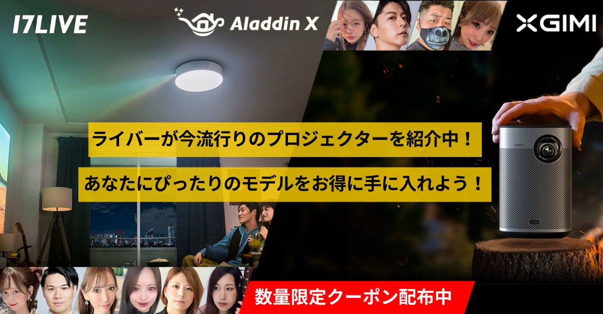 本配信では、「17LIVE」で活躍する10名のイチナナライバー(ライブ配信者)が、Aladdin Xが展開する累計販売台数24万台突破、ホームプロジェクター市場で5年連続1位(※1)獲得のプロジェクターシリーズ「Aladdin X」や「XGIMI」の商品を紹介いたします。