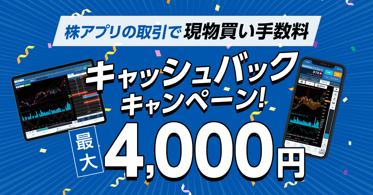 GMOクリック証券:最大4,000円!株アプリの取引で現物買い手数料キャッシュバックキャンペーンを実施
