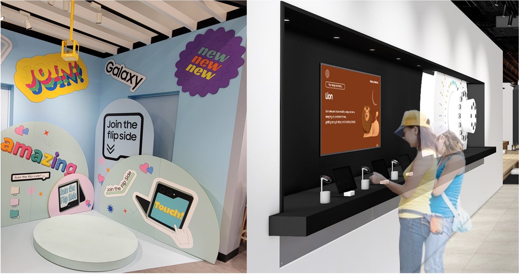本日より、世界最大級のGalaxyショーケース「Galaxy Harajuku」(東京都渋谷区)では最新折りたたみスマートフォン「Galaxy Z Flip5」を活用して様々なアングルで撮影体験が可能な「フレックスカメラセルフィー」エリアがオープンいたします。斬新な角度で美しいセルフィー撮影をお楽しみください。また、最新スマートウォッチ「Galaxy Watch6 シリーズ」を活用して、ご自身の睡眠タイプが診断できるコンテンツ「Sleep Survey」やご自身の体組成診断も出来るエリアもオープン。
