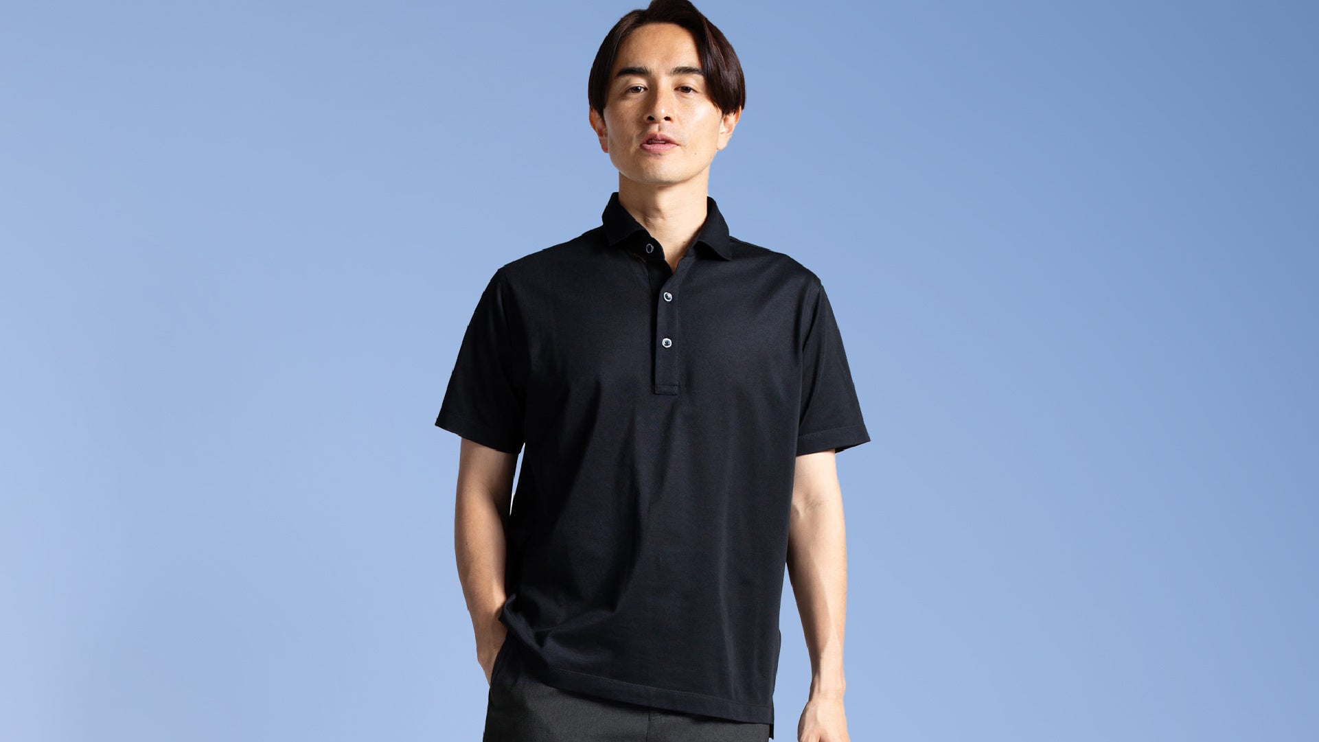 本商品は、湿度が高い日本の夏を快適に過ごせるよう日本製の機能性リサイクル素材「Sorbtek/ソーブテック」を使用。優れた吸水速乾と通気性でべたつきや蒸れなど、夏場の不快感から解放します。さらに、熱を吸収し、水気を蒸発することで衣服内の涼しさを保ちます。襟をあえて低めにすることで首周りの涼しさを確保。シンプルながらカジュアルに見えすぎないスマートなデザインに仕上げました。