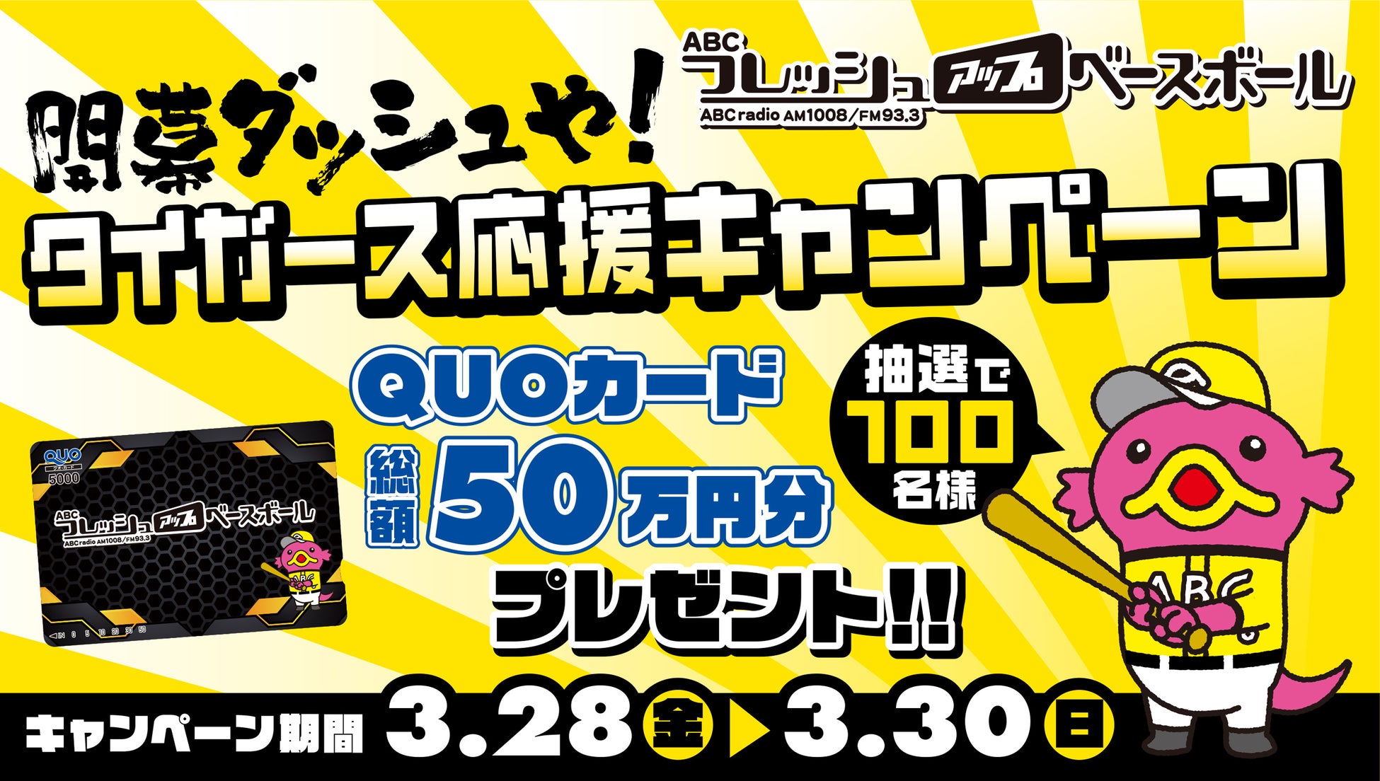 阪神タイガース開幕3連戦(3月28日(金)~30日(日))にオリジナルQUOカード5,000円分が