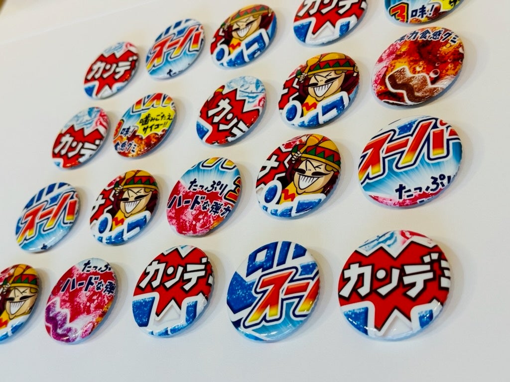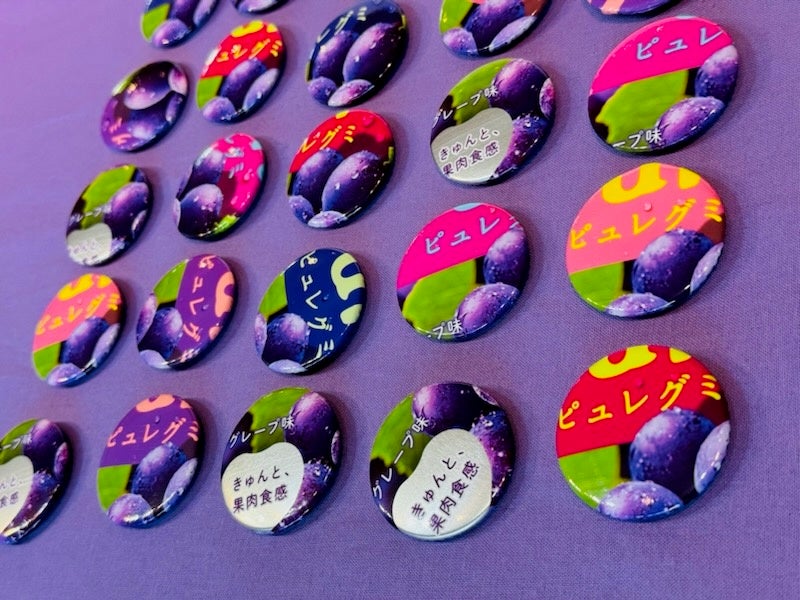 さらに今回、横浜赤レンガ倉庫での販売では、「ピュレグミ」や「カンロ飴」、「カンデミーナグミ」といった人気商品の廃棄包材がカプセルトイの缶バッジになって登場。どんな柄が出てくるか、ぜひこの機会にお試しください。