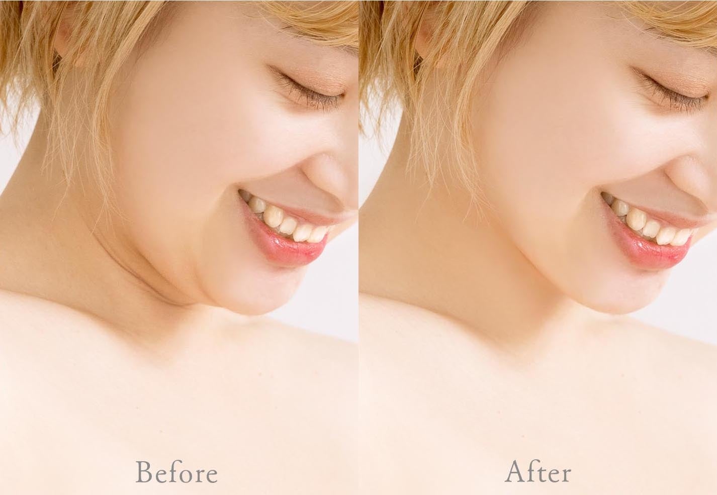 世の中には顔タイプ診断というものも広まっており「子供顔」「大人顔」・「直線」「曲線」などさまざまなタイプに分かれます。お顔の印象が違うからこそ、ポージングや写真の仕上がりによってはフェイスラインや二重顎が気になるというお悩みも。お客様ひとりひとりに合わせてキレイに整えます。