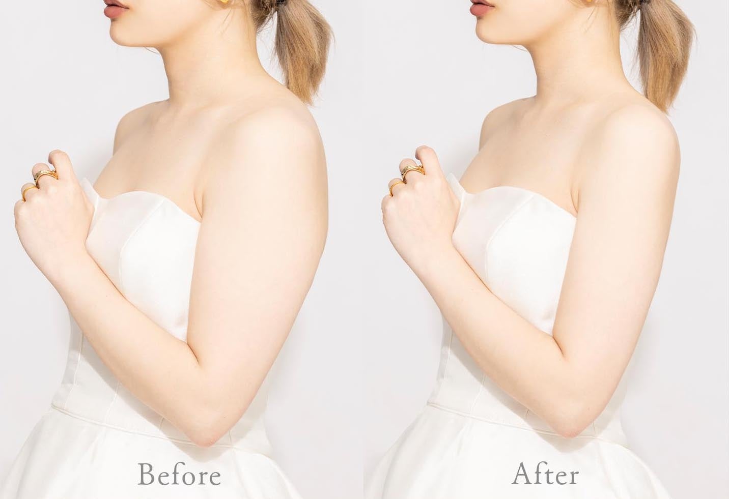 「ストレート」「ウェーブ」「ナチュラル」3つの骨格のそれぞれの特徴を理解しているからこそレタッチでしっかりカバー。お客様からのご相談でダントツで多い二の腕はもちろん、首周りや、肩のラインなど細部までこだわりをもって対応しております。