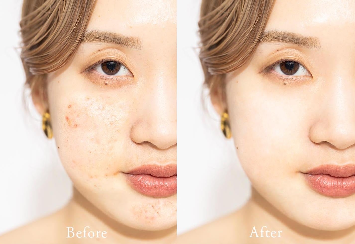 メイクや撮影ではカバーしきれない凹凸のある肌荒れ・キズ・シミ・シワを整えます。肌の質感を残しつつ、気になるところだけナチュラルに仕上げることが可能です。