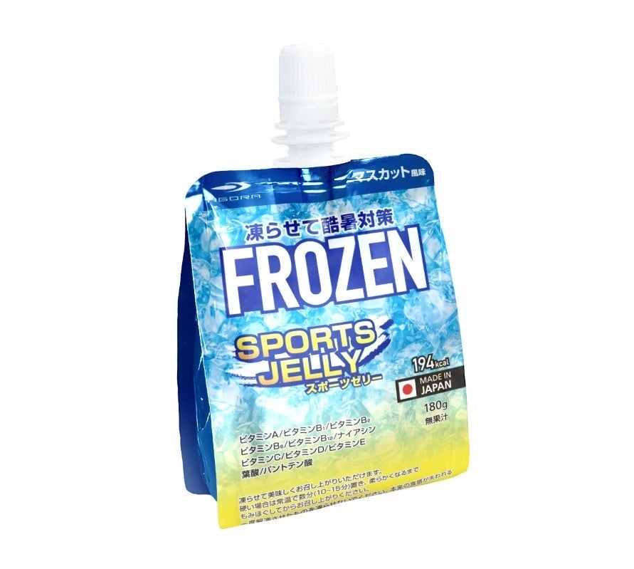 凍らせて美味しく飲めるマスカット味のフローズンゼリー。凍らせてもシャリシャリ食感で、均一に溶けていくため美味しさが持続します。夏場に不足しがちな塩分の補給も可能です。