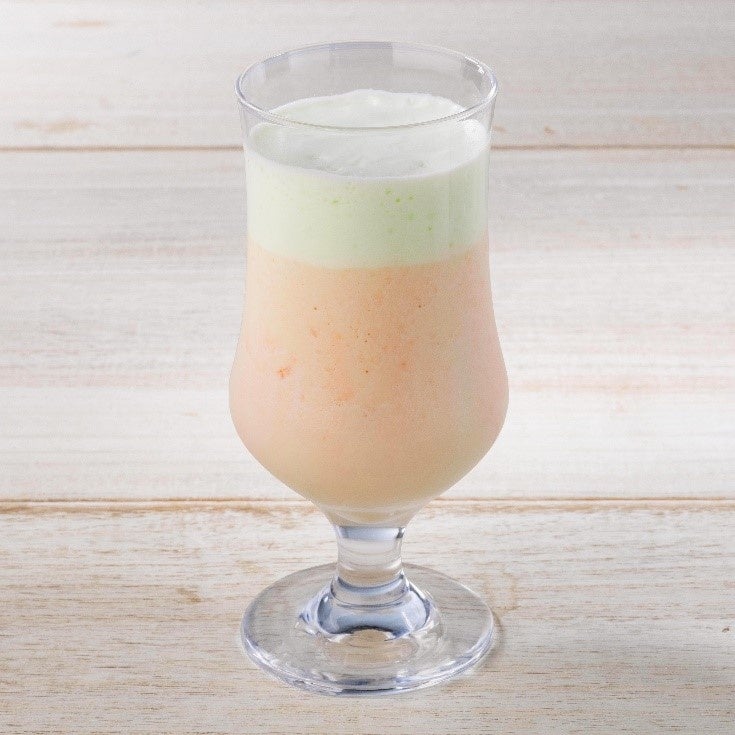 赤肉メロンとバニラアイスをミキサーにかけた濃厚なスムージーに、クリーミーなメロンフォームミルクをトッピングしました。