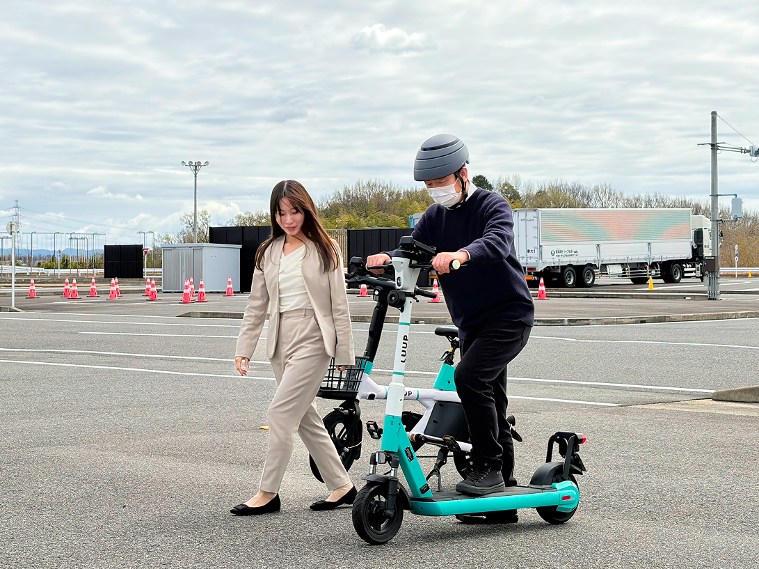 この度、株式会社Luup様のご協力を賜り、マイクロモビリティの試乗会を開催できましたこと、大変感謝申し上げます。 試乗会を通じ、電動キックボードで街中を移動する手軽さと、渋滞箇所での移動時間の短縮にもつながる乗り物だと感じました。バス事業者としては、今回の試乗体験から、マイクロモビリティの特性を理解する事ができ、より一層の予測運転と十分な側方間隔の確保など、一歩引いた「譲る気持ちで安全確保」の必要性があると感じました。
