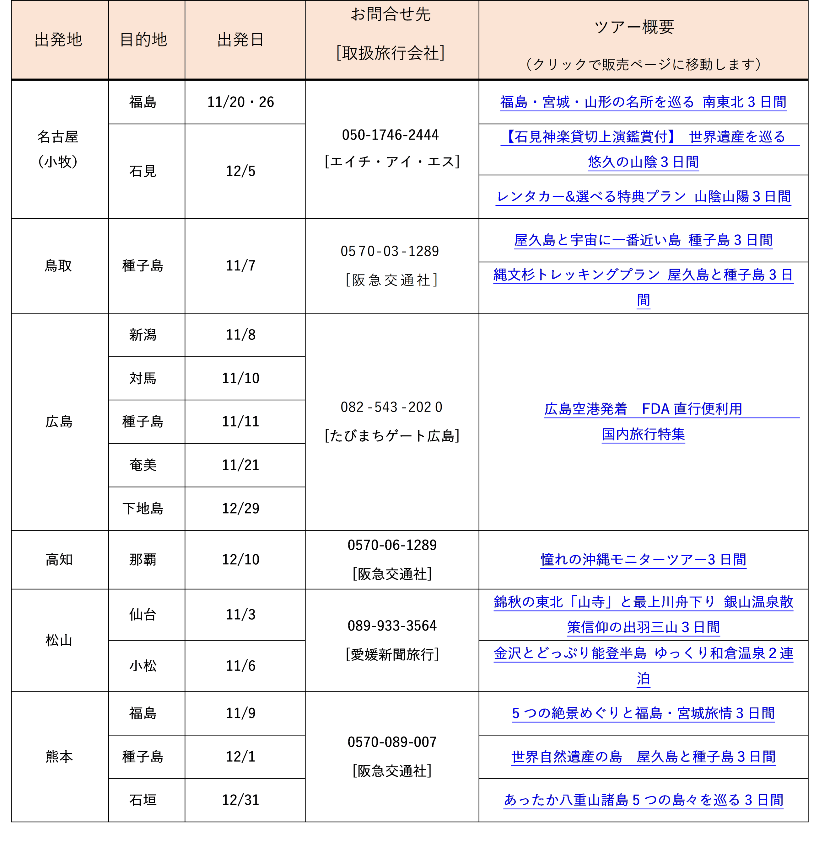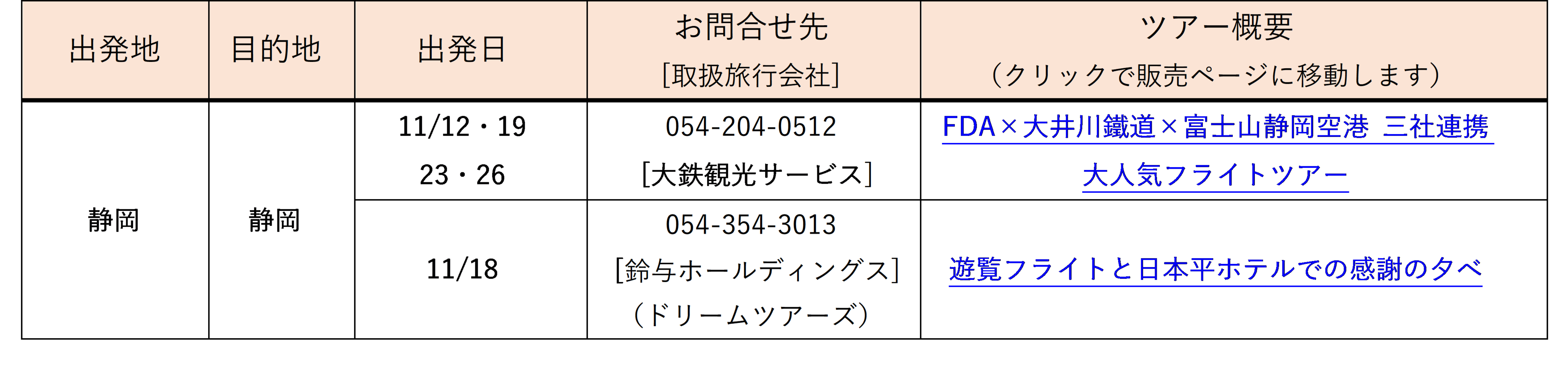 現在募集中の、FDAチャーター便を利用した旅行ツアーのご案内です。