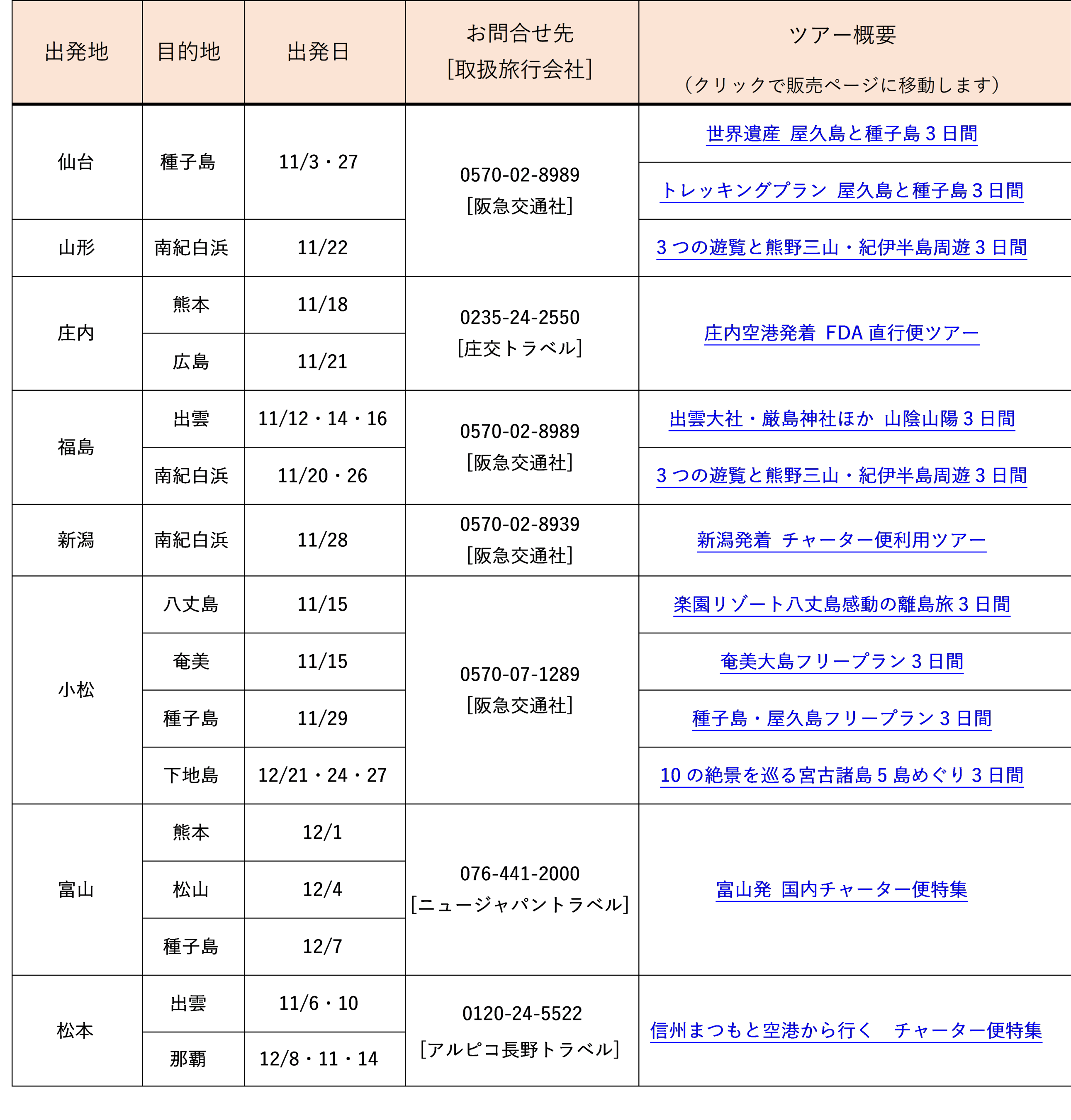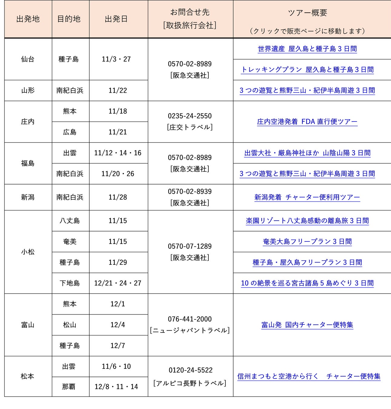 FDA チャーター便の運航情報について(2022年10月18日現在)